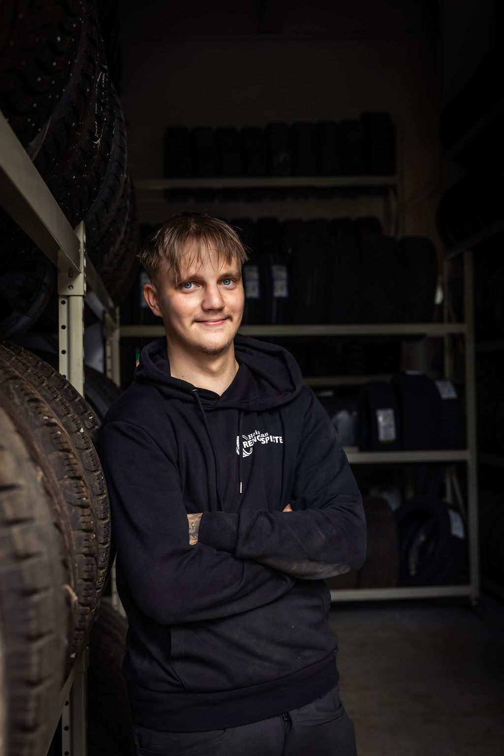 Eetun käsissä renkaat vaihtuvat hetkessä – ja asiakas lähtee tyytyväisenä.